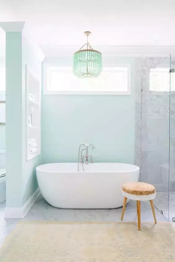 • 衛(wèi)生間文藝清新的馬卡龍綠,只一眼便令人心曠神怡,在這樣的空間里洗去一身疲憊,也不愧是一種生活享受。